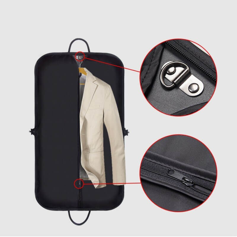 Die neue Anzugtasche schützt Ihre Kleidung vor Verschmutzung. Sie können Ihren Anzug mit dem Kleiderbügel einfach in die Tasche hängen. In der grosszügig ausgelegten Seitentasche können Sie weitere Wäsche verstauen.